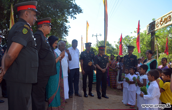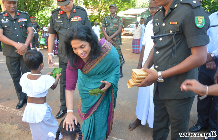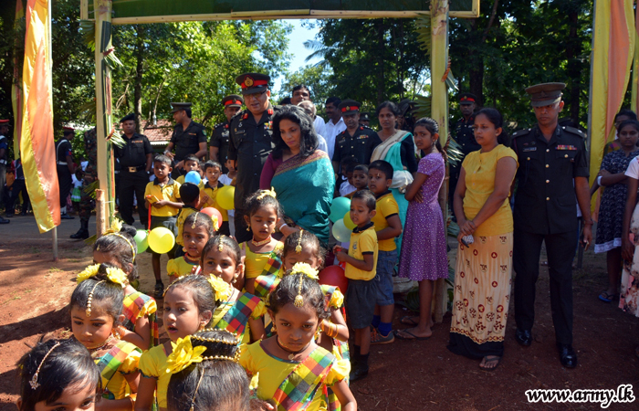 The land for establishment of the pre-school was donated by Mr Udayantha Bandara, a philanthropist cum an Ayurvedic medical specialist in the area while funds for tits erection were assured by Hemas Outreach Foundation with the coordination, made by Mrs Shiromi Masakorala, Hemas Lanka PLC Managing Director Communication and Sustainable Development and its Executive Director managing the 'Hemas Outreach Foundation'. The preschool to be built by Army technicians and professionals was a long felt necessity in the area since there were no such facilities available for hundreds of kids, living in those rural areas.