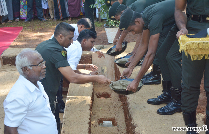 During a simple ceremony, the foundation stones were laid by Major General Kumudu Perera, Mrs Shiromi Masakorala, Mr.Udayantha Bandara, Brigadier Kumar Jayapathirana as distinguished guests, together with several Officers and invitees. The project will be completed by troops of the 212 Brigade under the supervision of the General Officer Commanding 21 Division, Brigadier Kumar Jayapathirana. |