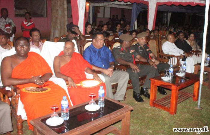 Ven. Kanthale Wimalasiri Thero, Ven. Aluthoya Seelarathana Thero, Rev Fr. Laxman de Abrew, Commander, 224 Brigade, Colonel Prasanna Ediriweera, SP, Kanthale, Mr. Ajith Hesiri, Major S.M.D.N Samarakoon, Commanding Officer, 15 Sri Lanka Light Infantry, OIC, Kanthale, Mr. M Wijesiri, OIC, Thambalagamuwa, Mr. Sampath Bandara, Mr L.MS Lansakkara, Principal, Mollipothana Sinhala Maha Vidyalaya and Mr. R.W.J.B Rabukwalla, Principal, Galmatiyawa Maha Vidyalaya attended the event as invitees. |