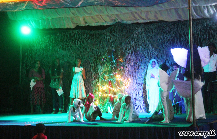 School students in the region presented Carols in Sinhala, Tamil and English languages as a symbol of peace and harmony. The event, witnessed by a large crowd glittered with a colourful display of fireworks as dusk fell. All the Brigades under command to the 22 Division contributed to the event by providing refreshments to all participants.