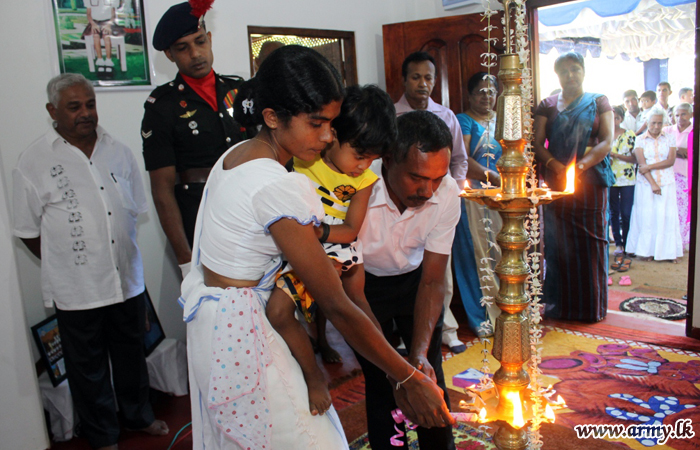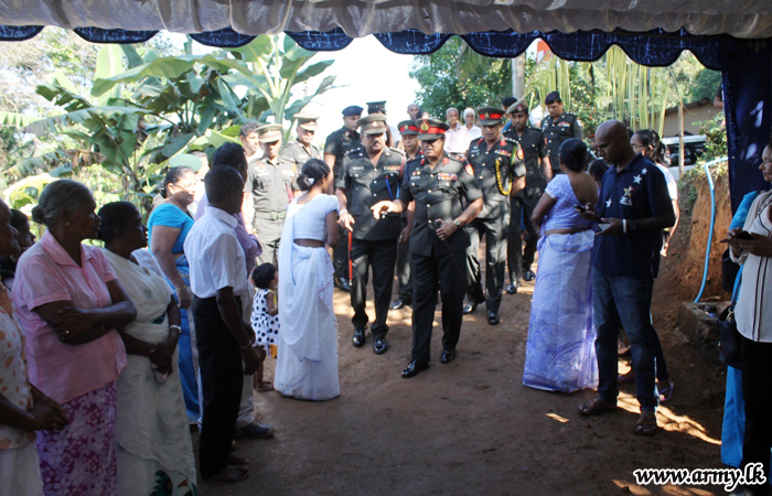 11 Division of the Security Force Headquarters - Central (SFHQ-Cen) considering the pathetic plight of a civil employee working for the 11 Division Headquarters in Kandy who lost his daughter after a boulder fell on his house roof at night while all were asleep in the year 2017, took steps to construct a new house in a 7-perch piece of land given to him by the Divisional Secretariat of Gangawata Korale in Hindagala, Doluwa area in Peradeniya.
