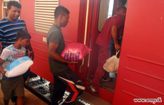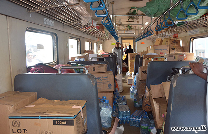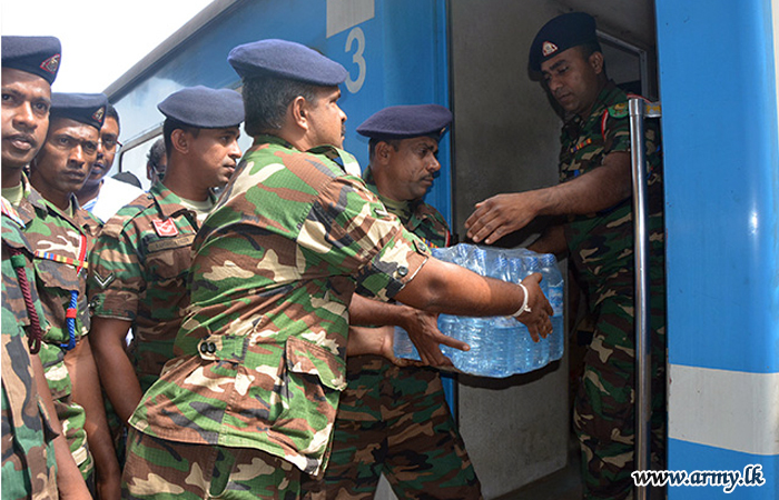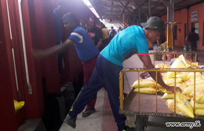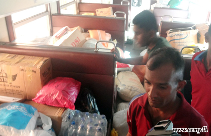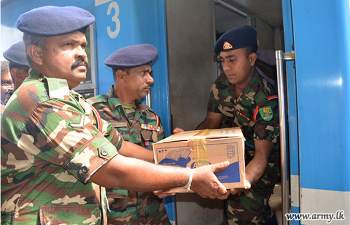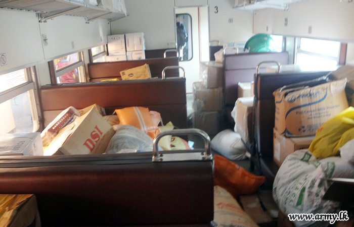 Accordingly, 58 Division troops,SFHQ-West troops,SFHQ-Wanni troops and SFHQ-KLN and other troops showed up at Matara, Galle, Kaluthara South, Colombo Fort, Maradana, Gampaha, Kurunegala, Mahawa, Galgamuwa, Anuradhapura and Kilinochchi railway stations when the train carrying relief goods reached those spots and assisted taking those packets into the train.