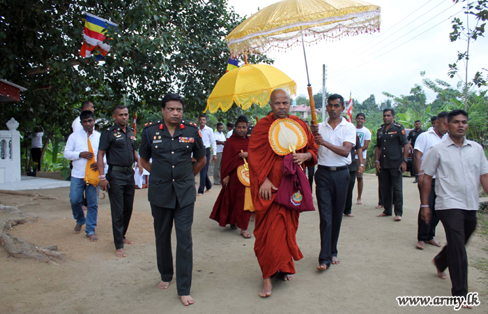The opening of the newly-constructed parapet (Bodhi Prakaraya) and the enshrinement of the new Buddha Statue at the 11 Division Headquarters in Pallekele took place on 21 December 2018 during a religious ceremony, headed by members of the Maha Sangha.