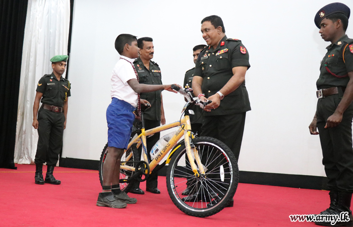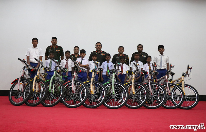 Major General Darshana Hettiarrachchi, Commander, Security Forces - Jaffna after inviting those students to the SFHQ-J premises handed over those incentives to coincide with the first working day of the New Year. This would facilitate these students to cut short their transport time period and reach their schools on time for studies since the peninsula consists of remote areas.
