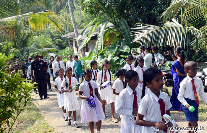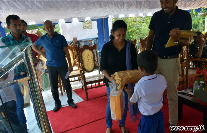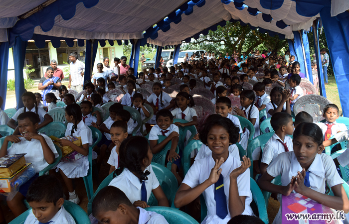 58 Division Headquarters taking the lead in this direction identified those remote schools in consultation with authorities in the provincial authorities in the Department of Education before the donation programme was held at the Senapala Samarasekara Kanishta Vidyalaya on Saturday (29).
