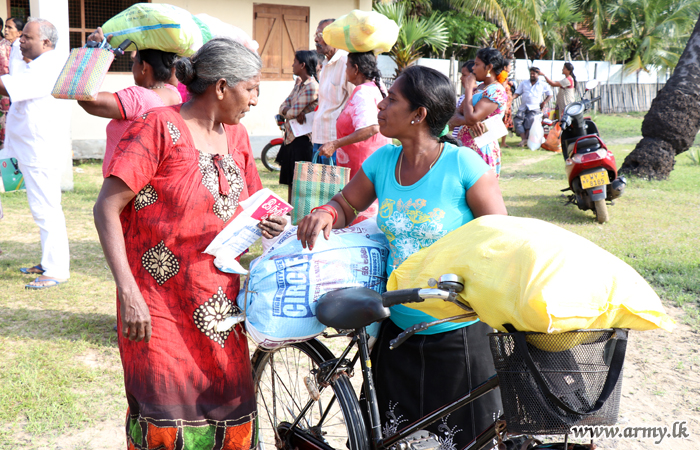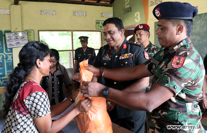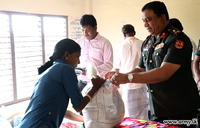 Major General Darshana Hettiarrachchi, Commander, Security Forces - Jaffna gathered those beneficiaries to respective public places and gave away those parcels of essentials as gifts for the New Year. |