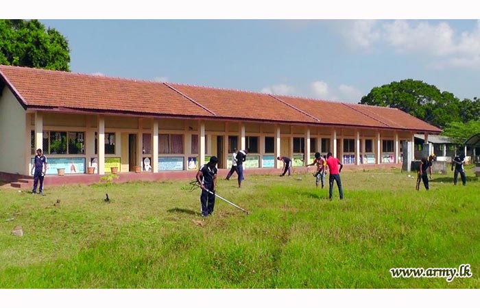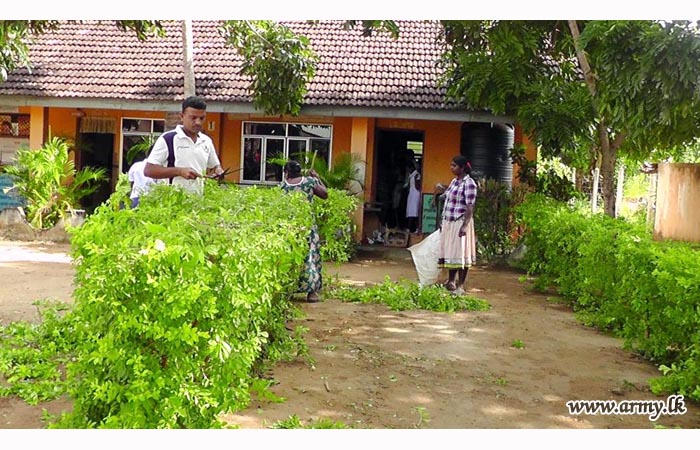 Troops of the 653 Brigade of the 65 Division under the Security Force Headquarters - Kilinochchi (SFHQ-KLN) cleaned the Therankandal Government Tamil Mixed School premises in a Shramadana on Tuesday (03) together with staff of the school.