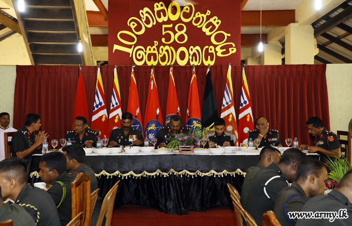 Major General Sudath Perera, General Officer Commanding (GOC) of the 58 Division on arrival was greeted to a Guard Turnout plus a parade presented by under command troops in the Division. An all rank lunch brought the morning programme to an end.