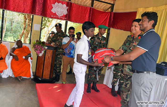 In the meantime, Hatton National Bank headquarters Colombo in response to a request made by the 541 Brigade of the 54 Division came forward to sponsor a large donation of school accessories and school bags to 170 students in Mannar district on the eve of the New Year on 30 December 2018. Each packet of those accessories worth about Rs 2500/= included exercise books, bags and other accessories needed for their studies.