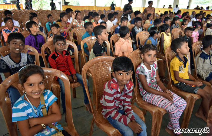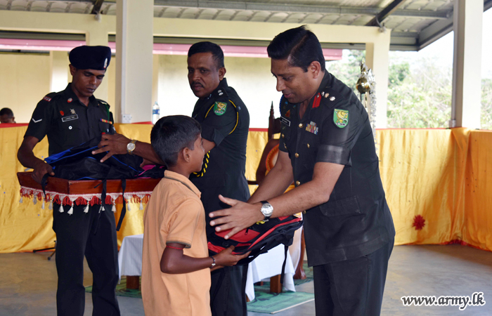 Brigadier Bandara, GOC, 54 Division, together with several donor representatives distributed those essentials among students. Ven Ambagahawewa Saranakiththi Thero, 541 & 542 Brigade Commanders were also associated with the community project, attended by a large gathering of parents, children and other guests. |