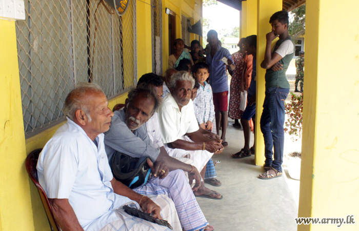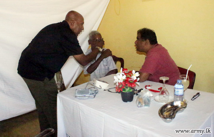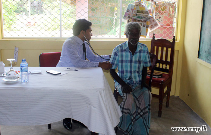 Organized by the 572 Brigade Headquarters commanded by Colonel D.M.P.P Dassanayake, a group of 14 Sri Lanka National Guard Army personnel supported the mobile clinic, held at Kalwattithedal Nageshwara School in the No. 56 Puliyanpokkanei Grama Seva Division.