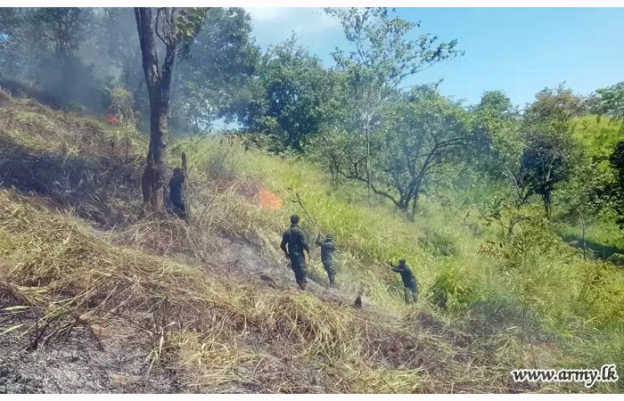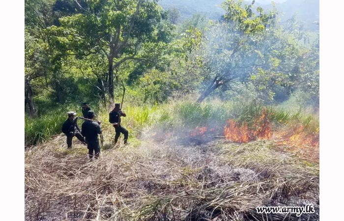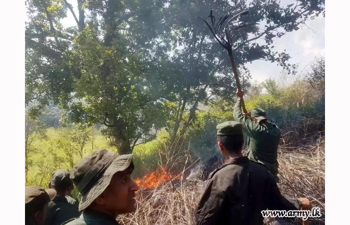 Meanwhile, 31 troops of the 9 SLSR on Monday (7) brought a bushfire erupted in Vavulpathana mountain range in Badulla area. Those 9 SLSR troops of the 121 Brigade under the 12 Division within a matter of hours extinguished the spreading wild fire. |