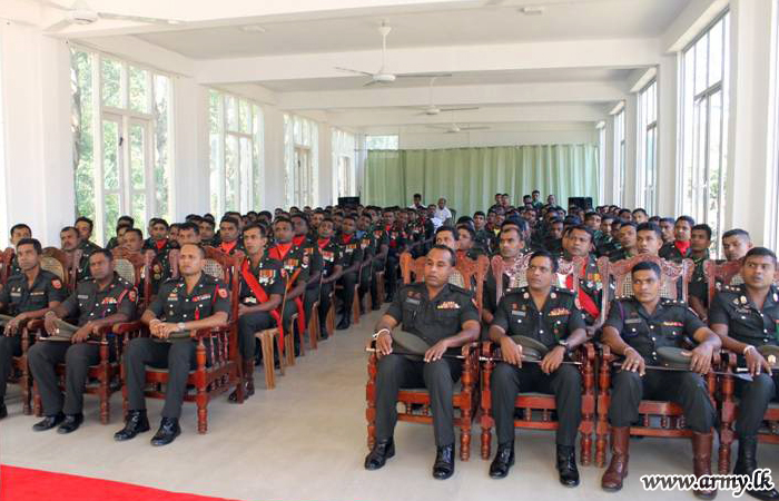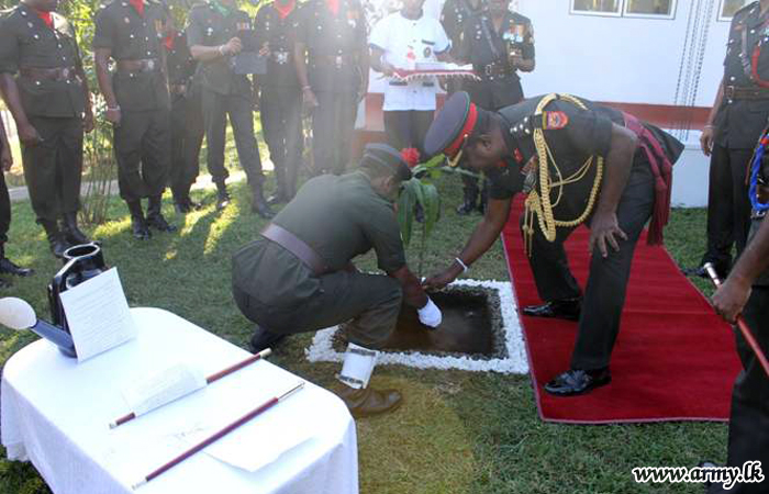 A Guard Turnout, presented to the 121 Brigade Commander, Brigadier N.C Soomaweera at the entrance to the premises greeted him on the anniversary day before the rest of the itinerary got underway, inclusive of the planting of a mango sapling, a troop address and an all rank lunch.