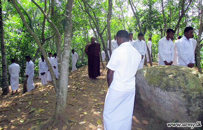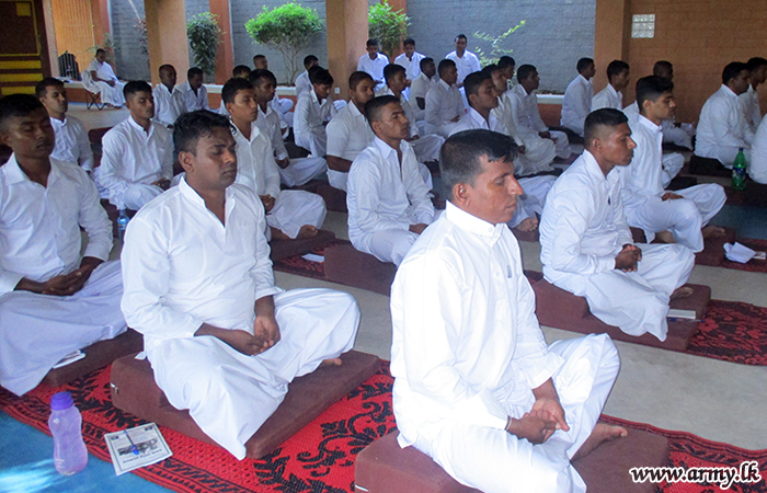 Ven Diyasenpura Wimala Thero, the renowned meditation practitioner at ‘Bavunseth Mind Relaxing Meditation Centre’ at Hellummahara, Dekatana held another meditation session for one Officer and forty-eight Other Ranks of the Sri Lanka Army on Monday (7).