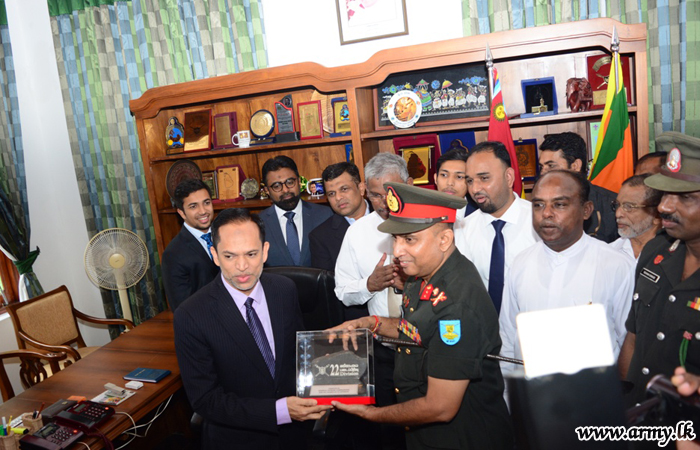 Meanwhile, Major General Aruna Jayasekera on Monday (7) paid a courtesy call on the new Governor, Eastern Province, Mr. M.L.A.M Hizbullah at the Governor’s Secretariat in Trincomalee and extended his greetings before he educated him on the role of the SFHQ-E and ongoing development projects.