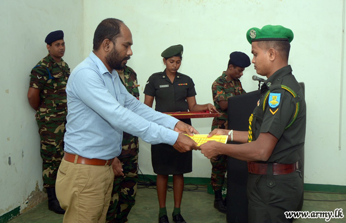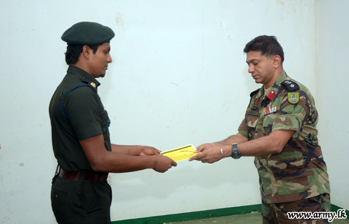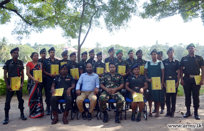 26 soldiers who followed the course during 29 September - 29 December 2018 received certificates of participation and proficiency recently during an awarding ceremony, headed by the General Staff Officer I (Coordination) of the 22 Division, Lieutenant Colonel M.H.R Fernando who graced the certificate awarding ceremony as the Guest of Honour.