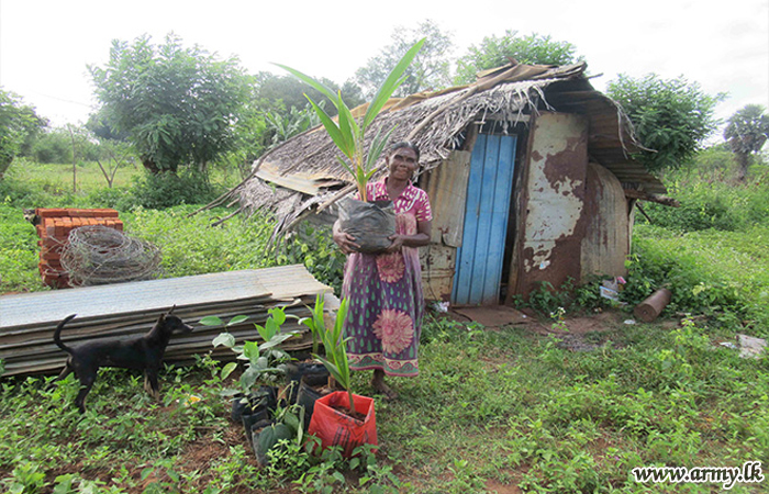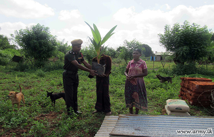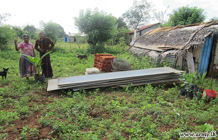 Brigadier K. D. C. G J Thilakarathne, General Officer Commanding, 61 Division took steps to provide the hapless civilians with tin sheets, cement bags and bricks for completion of his house. Troops also facilitated transport of those items to the location.