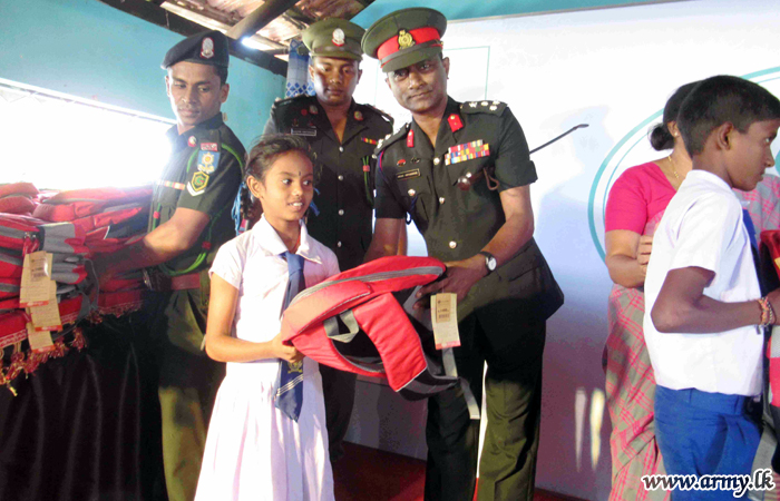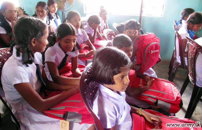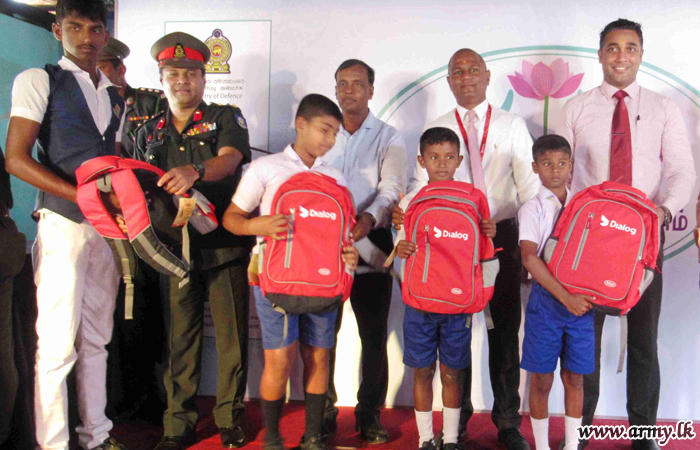 A few more than 400 flood-affected students at Sugandipuram Tamil Maha Vidyalaya and Irattamadu Tamil Maha Vidyalaya in Mullaittivu through Dialog Axiata sponsorship, organized by the Security Force Headquarters – Mullaittivu (SFHQ-MLT) received school accessories and essentials as relief assistance during a recent ceremony, held at Sugandipuram Tamil Maha Vidyalaya premises.