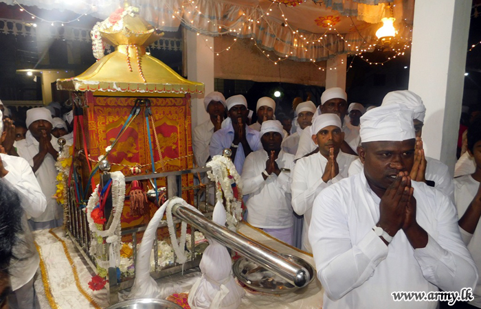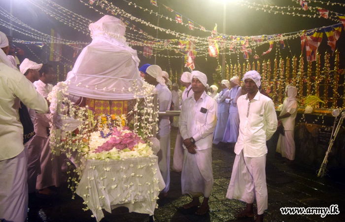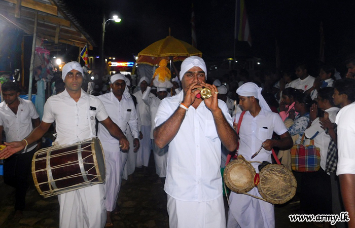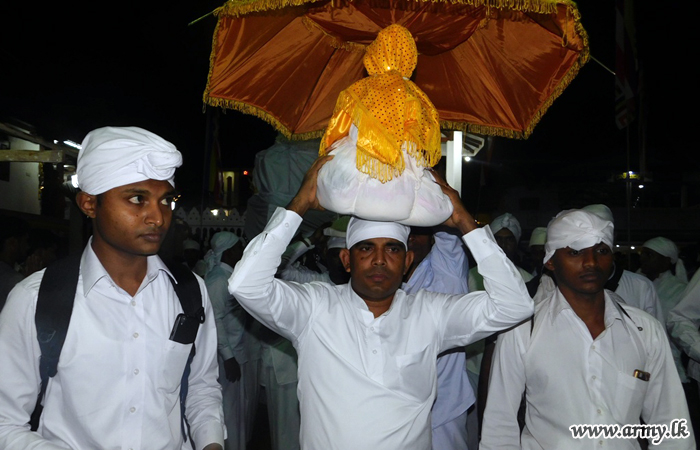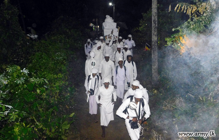 GW troops from the Day 1 of the commencement of the religious procession to take the statue from Pelmadulla Galpoththawala Sri Pada Viharaya assisted carrying the statue at the request of the Sri Pada Chief Incumbent, Most Ven. Bengamuwe Sri Dhammadinna Thero, who is also the Chancellor of Uva-Wellassa University.