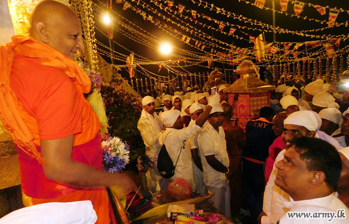 A group of about 130 Gemunu Watch (GW) All Ranks, including the GW Centre Commandant, Senior Officers, Officers were present at Sri Pada summit at Mahamaluwa when the auspicious statue of God Saman was placed for veneration, heralding the start of the annual pilgrimage season on ‘Unduwap Full Moon Poya Day’ in December 2018.