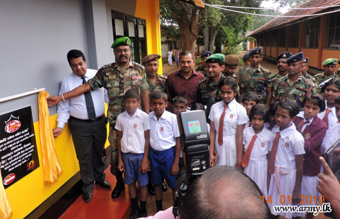 The project, which cost CBL’s ‘Munchee Gamata Sarana’ programme a sum of Rs 3.5 lakhs but built by Army troops was vested in the school on Monday (14) in the presence of the Principal at the school, Brigadier Dammika Jayasinghe, General Officer Commanding, 62 Division, Mr Vijith Nishanth, Marketing Manager of the CBL, representatives of the CBL, Colonel Saliya Amunugama, Commander, 622 Brigade, Lieutenant Colonel Sunil Jayarathne, Civil Affairs Officer, 622 Brigade and Major Manjula de Silva, Commanding Officer, 9 Gajaba Regiment, teachers and students.