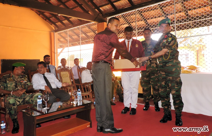 Colonel Saliya Amunugama, 622 Brigade Commander, Lieutenant Colonel Sunil Jayarathne, Civil Affairs Officer, 622 Brigade and Major Manjula de Silva, Commanding Officer, 9 GR and their troops organized the event where the donors and builders of the IT Unit were warmly welcomed in keeping with Hindu traditions.