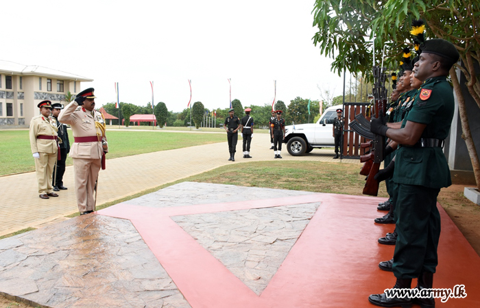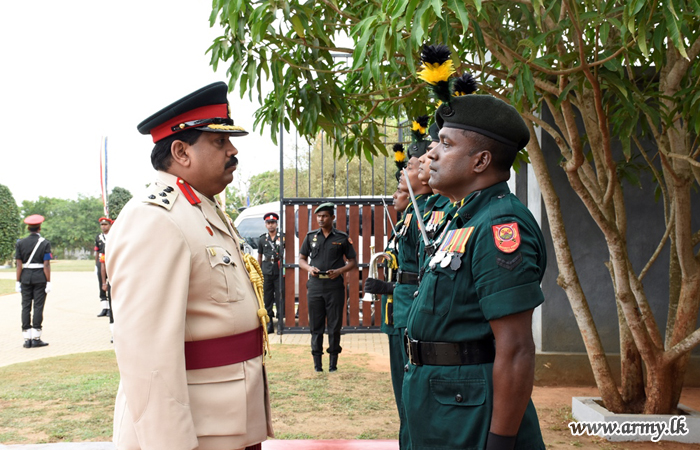A formal Guard Turnout and a Guard of Honour, presented by 9 Sri Lanka Sinha Regiment troops greeted him in accordance with military traditions on arrival at the premises. Afterwards, he left his signature in a formal document to signify the acceptance of his new office.