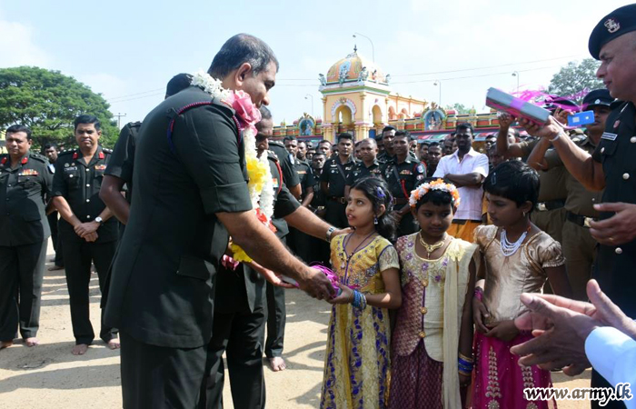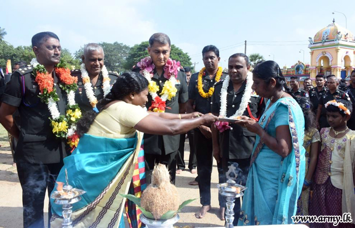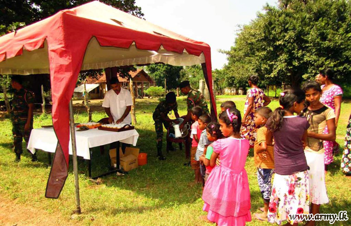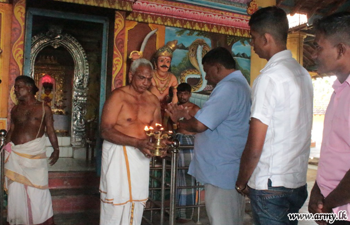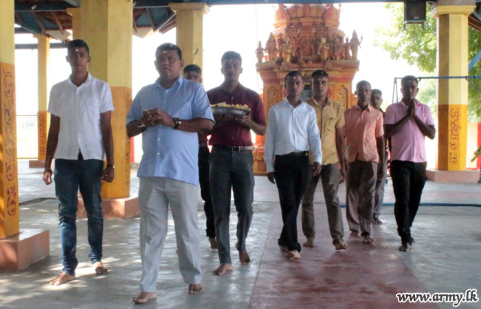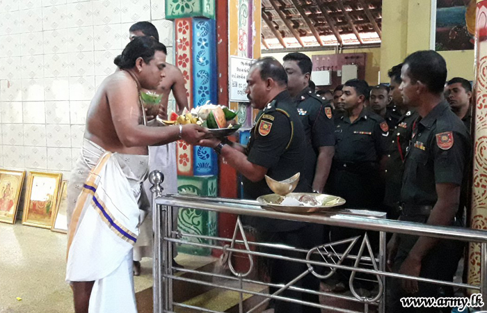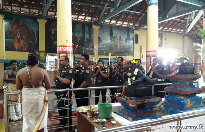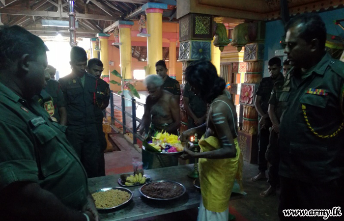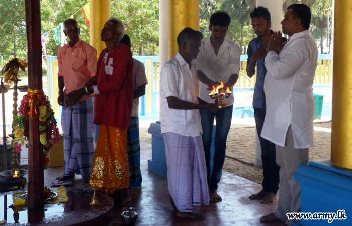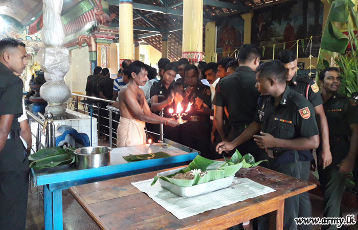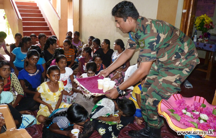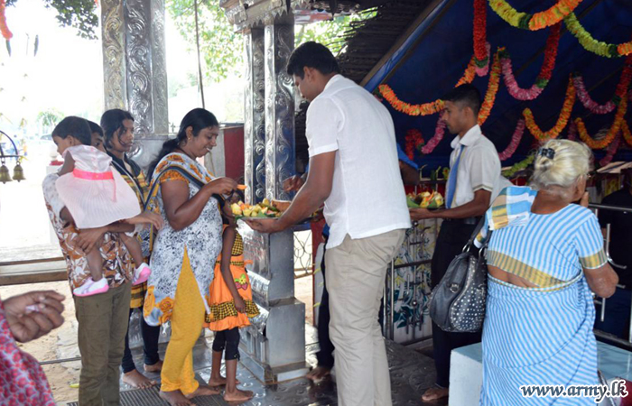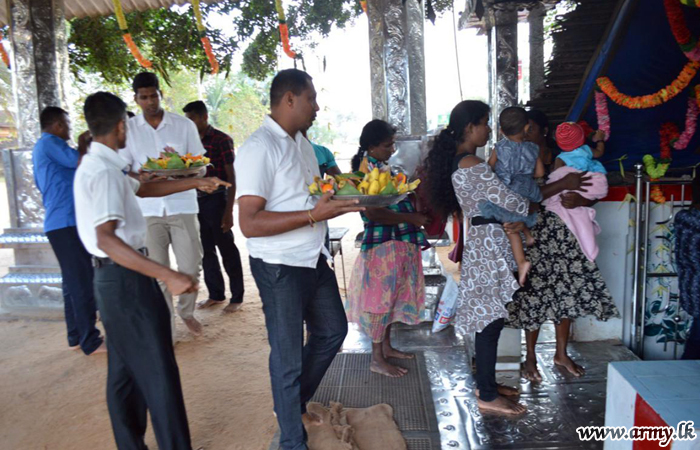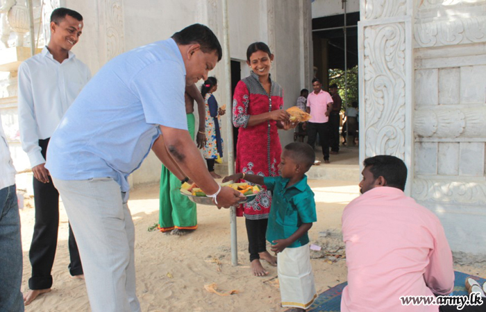 Similarly, a Kovil Pooja, organized by 233 Brigade troops at Periyaswami Kovil, Palchchani was attended by nearly 200 devotees. The gathering and children at Thilakawathiyaar Girls’ Home in Kadiraveli were treated to snacks in the same evening.