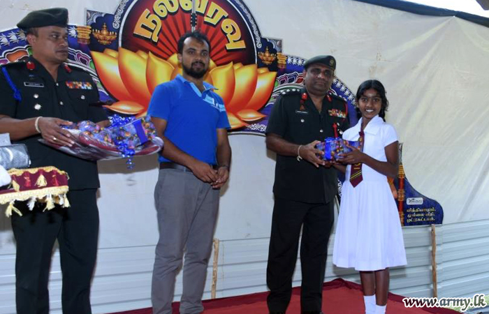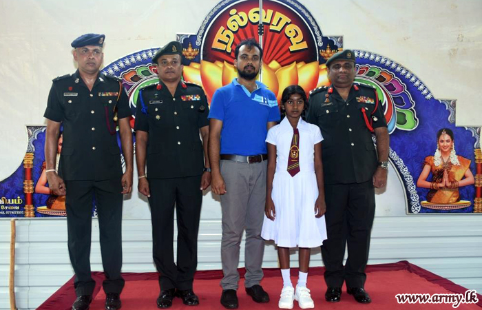 In addition, the Grade 5 Scholarship winner, R. Durhana at Palampai College in Mullaittivu who received the highest score in the district was also awarded a scholarship, money and school accessories, following the sponsorship provided by Vavuniya Hydramani (Pvt) Ltd with the support of the 64 Division troops.
