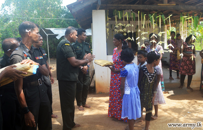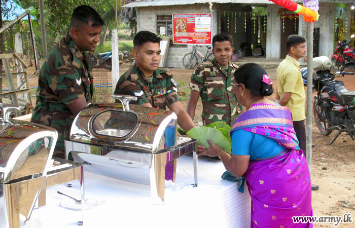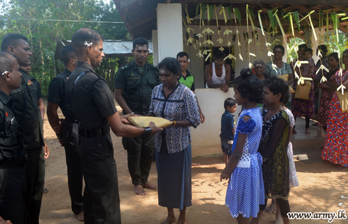 20 (V) Vijayabahu Infantry Regiment and 7 Sri Lanka National Guard troops under the 652 Brigade organized a Thaipongal Pooja at Arogyapuram Amman Kovil. After the ceremony, troops distributed refreshments among the civilians who attended the event. Meanwhile, 10 Sri Lanka Light Infantry Regiment and 21 (v) Sri Lanka Light Infantry Regiment troops under the 653 Brigade organized a distribution of dry ration packs among 25 low income families at the 21 (V) Sri Lanka Light Infantry Regiment premises in Thunnukkai.