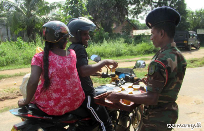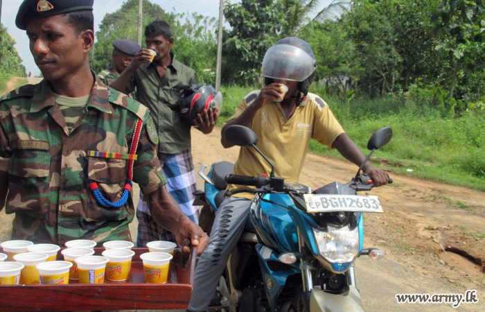 A milk coffee Dansela (free delivery) was conducted by 12 SLNG troops of the 232 Brigade at Kalawadi Kovil premises. Approximately, 150 civilians enjoyed the hospitality on l5 January.