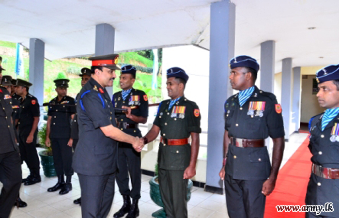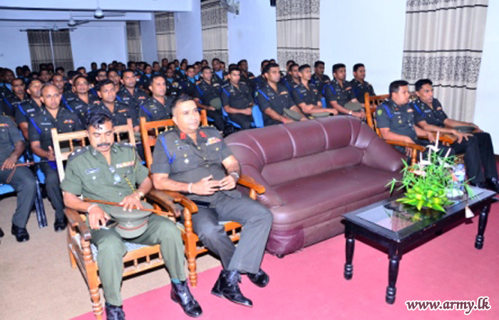 The day's Chief Guest Major General Wijesinghe who paid an official visit to the School was received on his arrival by the Commandant, Colonel Imal Assalaratchi before he was conducted to the auditorium where the day’s certificate-awarding ceremony to course attendees got underway.