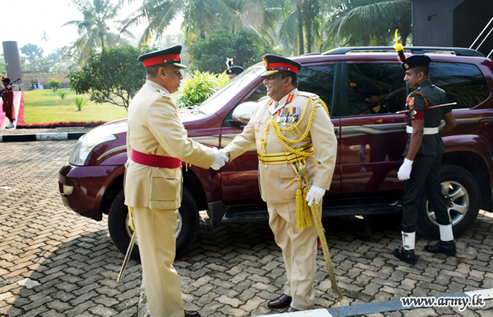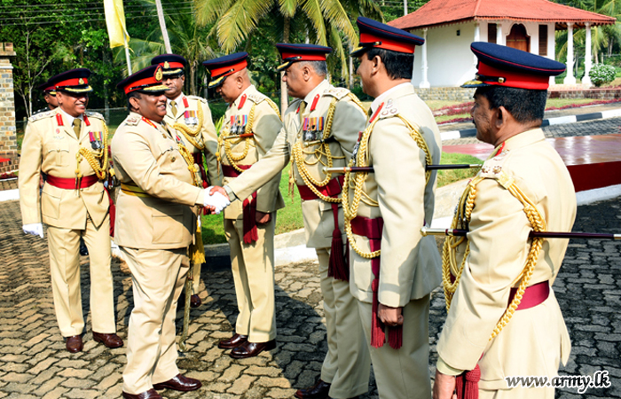 A customary Army formality, held at the Vijayabahu Infantry Regiment (VIR) Headquarters at Boyagane on Friday (19) saluted the newly-promoted Major General D.M.D.C.D Gunawardena of the VIR upon his arrival at the premises after his elevation to the new rank.