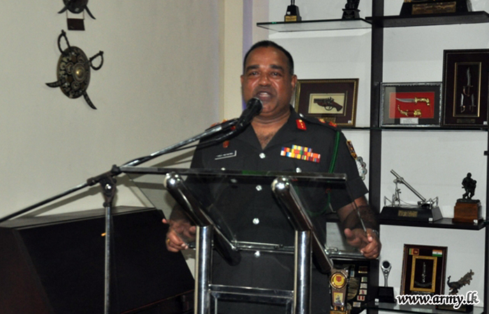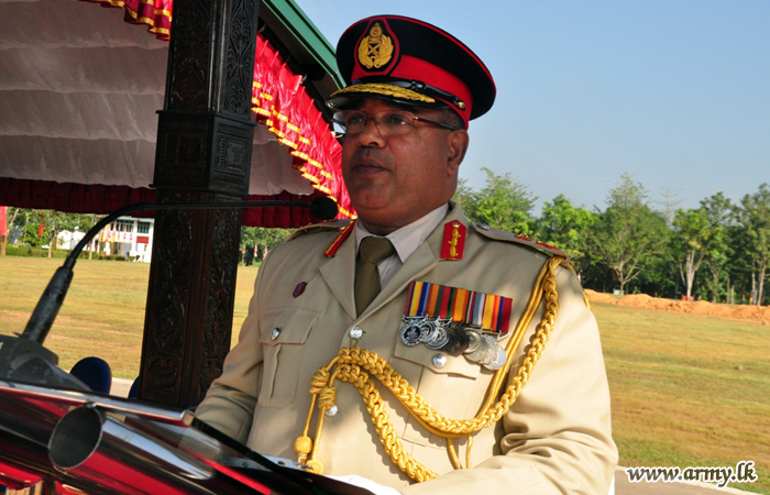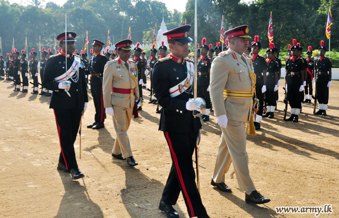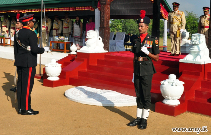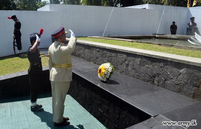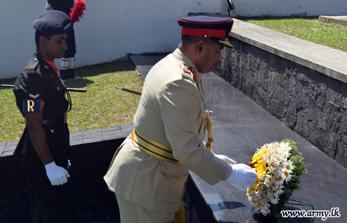 GW Centre Commandant, Brigadier K Prematillake welcomed the day's Chief Gust on arrival and invited him to review the Guard Turnout at the entrance and receive the salute of the military parade, held in his honour. Afterwards, the memory of fallen GW War Heroes was recalled after placing a floral wreath at the GW monument as has been the tradition.
