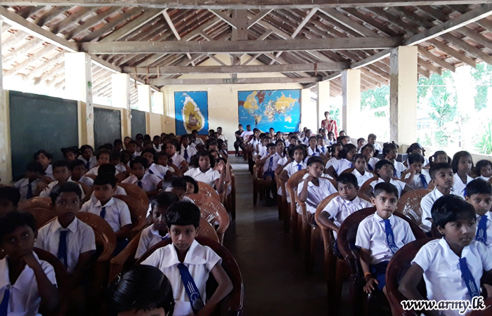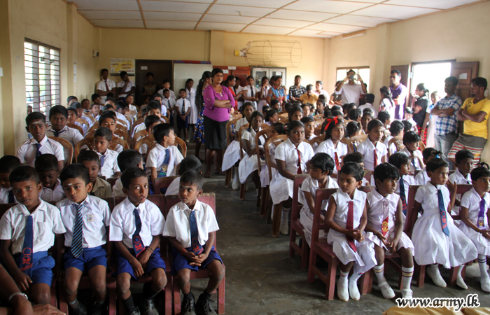 This gesture of brotherhood and reconciliation, coordinated by Colonel Lanka Amarapala under guidelines given by Major General Dushyantha Rajaguru, Commander Security Forces- Mullaittivu was conducted under the supervision of Major General Ruwan Wanigasooriya, General Officer Commanding 59 Division. Together with the Principal and tutorial members, a representative group of students joined the distribution.