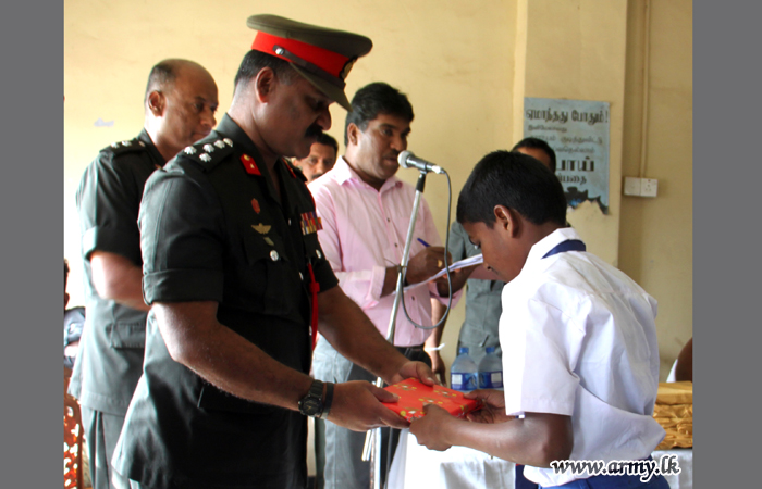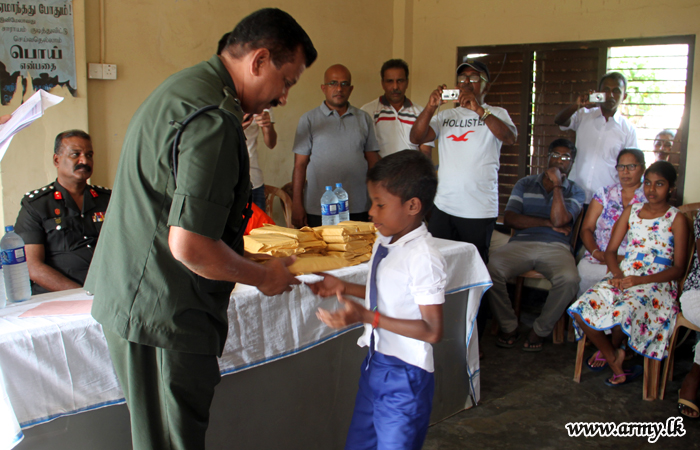 In the meantime, Jaffna troops once again extending their hand of reconciliation and goodwill coordinated the donation of 250 more packs of accessories and exercise books to deserving students in four more Jaffna schools on Saturday (19). The programme was initiated by the Commander Security Forces - Jaffna, Major General Dharshana Hettiarachchi with a view to uplifting educational standards of poor students in the peninsula after several donors offered their sponsorship to the worthy project.