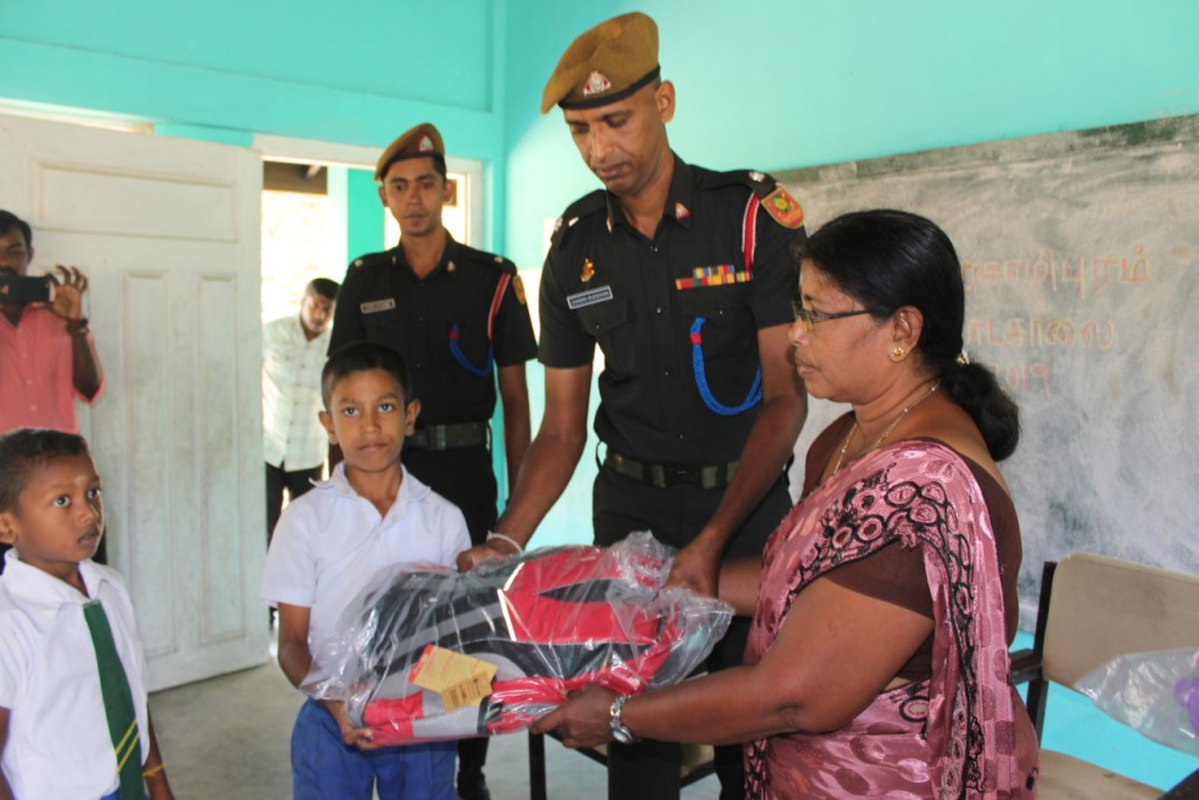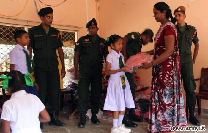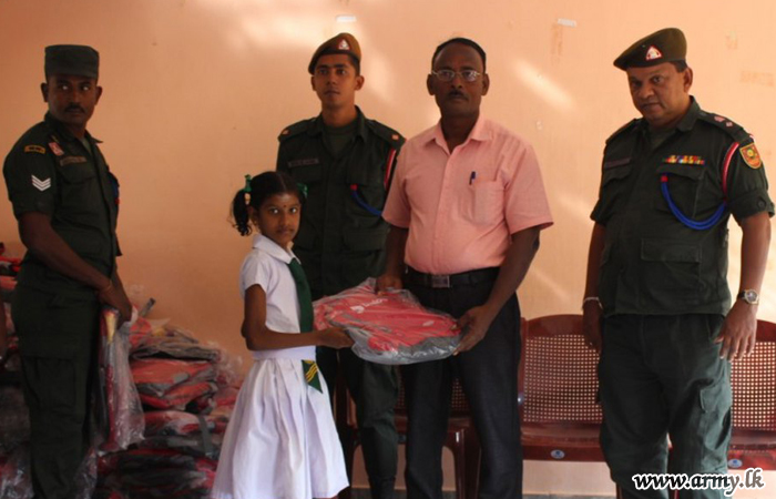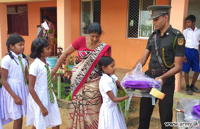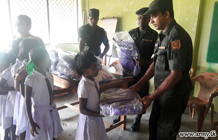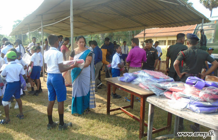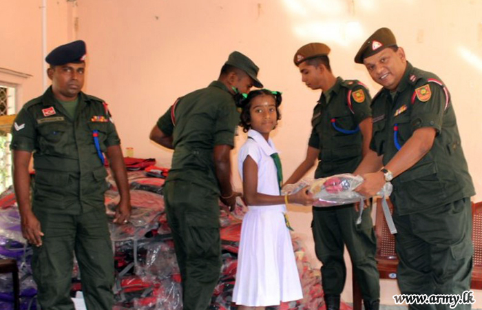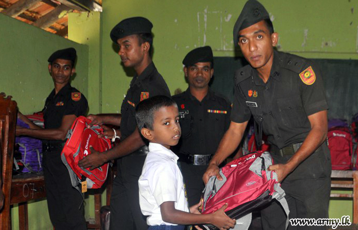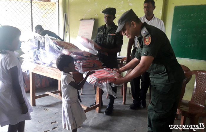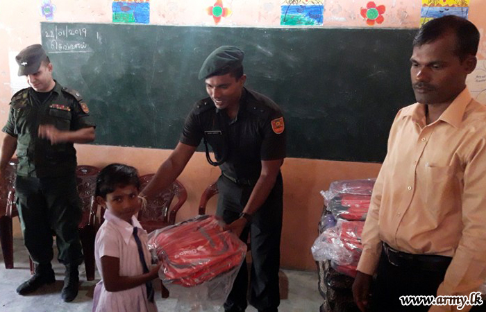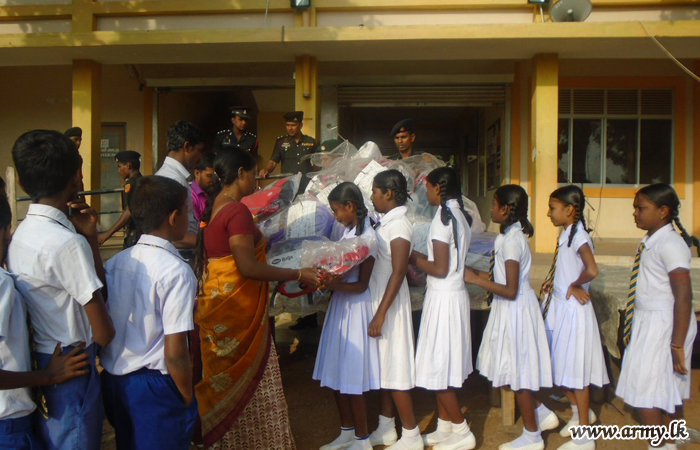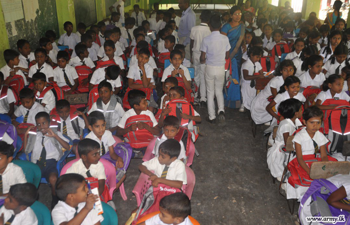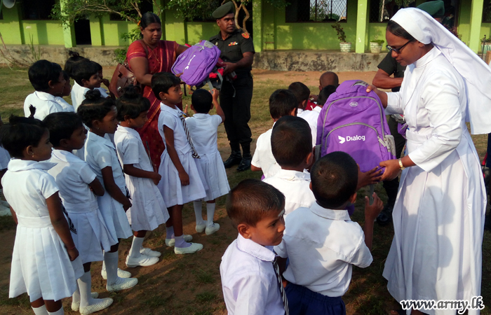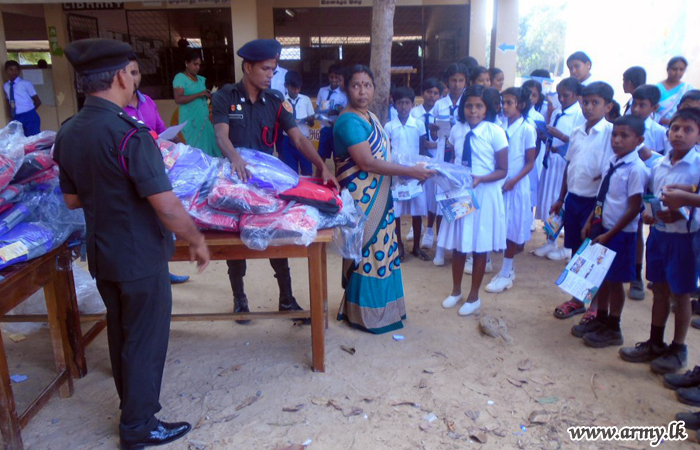 Meanwhile, one more distribution programme of school equipment for selected 217 flood-affected school students was held at the Periyakulam Primary School, Kattakau Primary School, Kalmadu Nagar Primary School and Sivapada Kalaigam Government Tamil Mixed School on Tuesday (22) following sponsorship jointly provided by Ministry of Defence and Dialog Axiata through coordination of 572,574 Brigades, 6 Sri Lanka Sinha Regiment and 3 Gajaba Regiment troops.