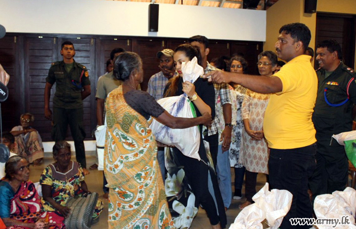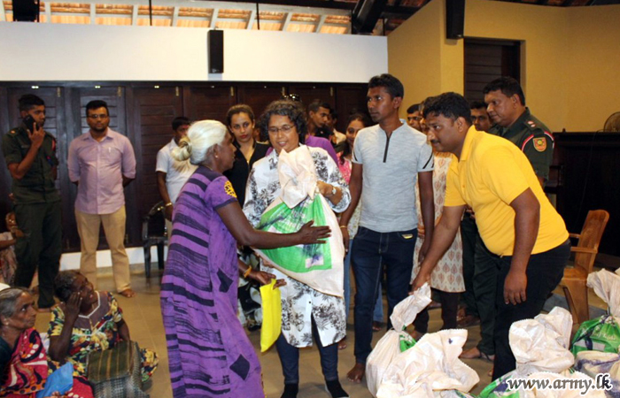 Meanwhile, the former popular actress turned Yoga instructor, Ms Anoja Weerasinghe and her supporters in 'Gestures' Training centre gave away 100 dry ration packets and essentials to flood–affected families free in Dharmapuram village on Monday (21). Donors after talking to those affected families distributed those gift parcels as immediate relief essentials, following coordination made by the 57 Division troops.