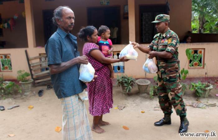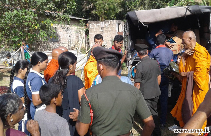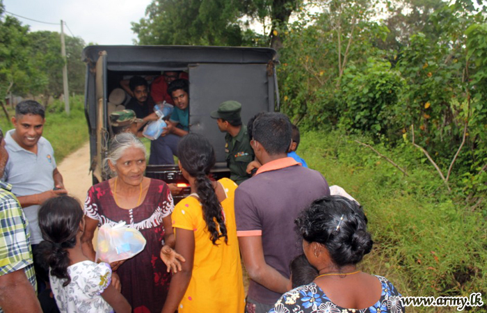 In the meantime, 150 more flood-affected families in Kilinochchi under the supervision of the Major General Vijitha Ravipriya, GOC, 57 Division received essentials and dry rations on Wednesday (23) thanks to the generosity extended by a group of Buddhist monks, Ven Galle Udhita Thero, Ven Balangoda Budhdhagosha Thero, Ven Theligoda Sangharathana Thero and Ven Balangoda Damitha thero.