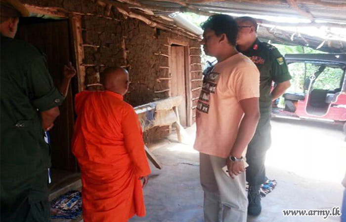 During a recent visit to the area, Major General Perera unexpectedly spotted a tiny dilapidated residential cottage (nunnery), made of wattle and daub where three feeble Buddhist nuns were conducting religious performances amidst extreme hardships.