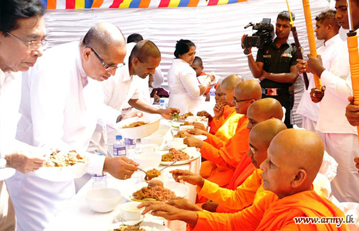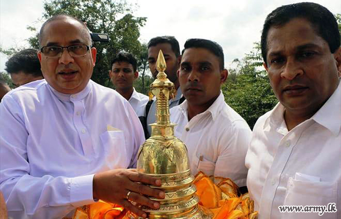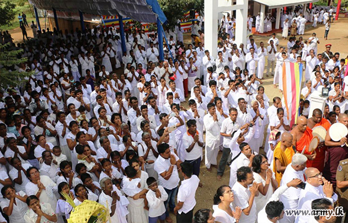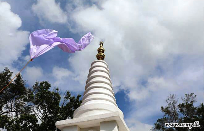 On Duruthu Full Moon Poya day (20), the pinnacle atop the new pagoda was unveiled, relics in the pagoda enshrined and the Buddha statue in the shrine was placed in the presence of a large gathering of devotees and donors, headed by Major General Kumudu Perera, Major General Prabath Dematanpitiya and a host of senior SFHQ-W Officers and Other Rankers.