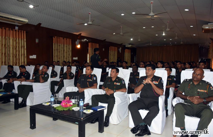 100 Officers on the instructions Major General Dushyantha Rajaguru, Commander Security Forces – Mullaittivu (SF-MLT) listened to the comprehensive lecture, delivered by Lieutenant Colonel Rasika Gunasena, Commanding Officer 7 Sri Lanka Armoured Corps.