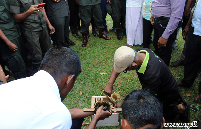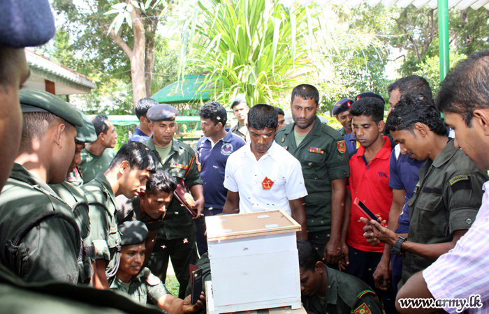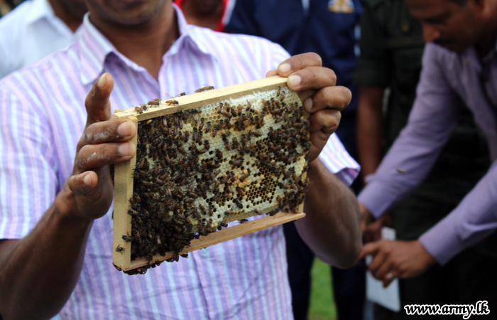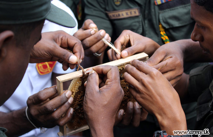 Intending to help further enhance possibilities of earning an extra income and uplifting economic standards of Kilinochchi civilians, the 57 Division Headquarters on Tuesday (29) conducted a training programme for 10 regional agricultural officers and 40 Army personnel on bee-keeping.
