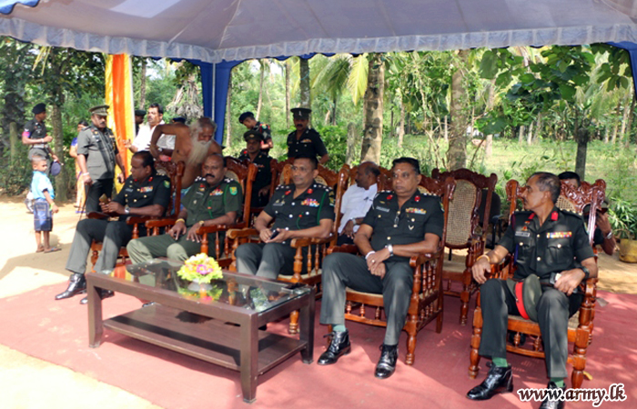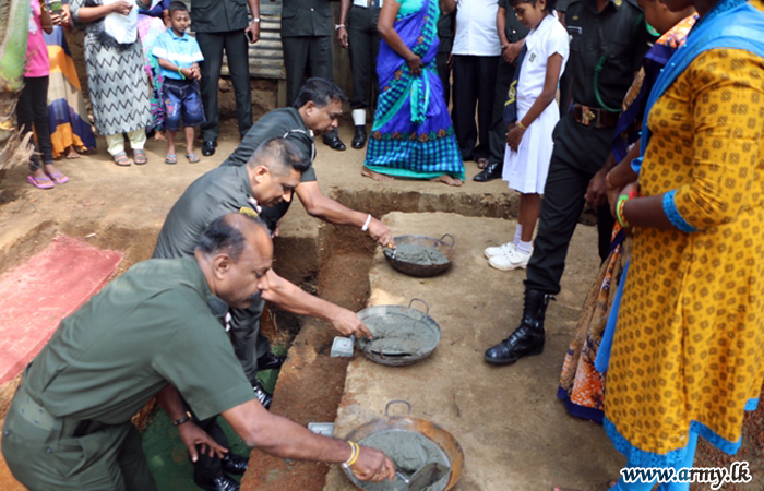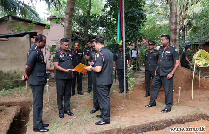 On Thursday (17), representing the Commander SF-W, Brigadier Kumar Jayapathirana, General Officer Commanding, 21 Division laid the foundation stone for construction of a new house for Niwarasana’s family at the auspicious time.