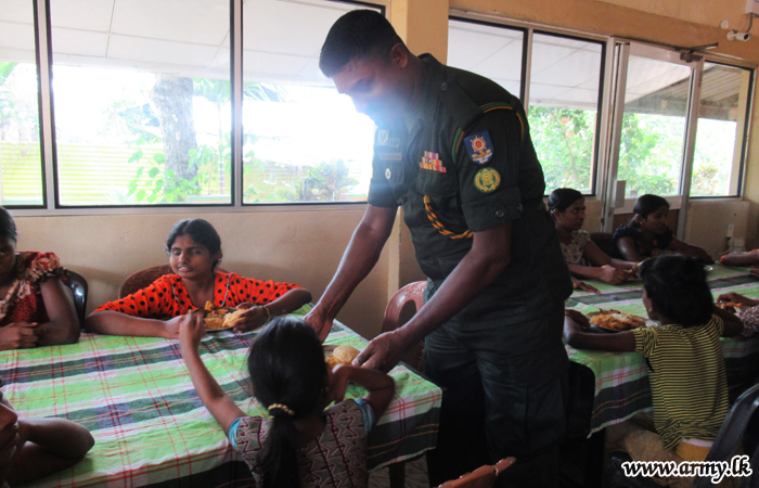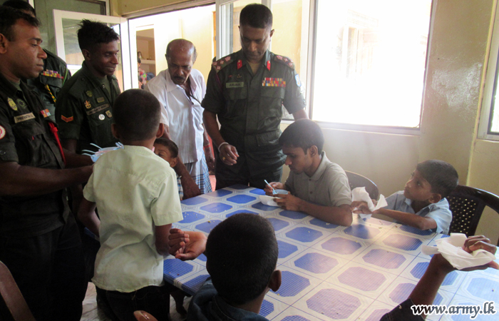 Troops of the 68 Division under the Security Force Headquarters - Mullaittivu (SFHQ-MLT) on Saturday (2) offered a special meal to 53 kids with special needs at Iniya Vazhvu Illam (Home for Happy Living) orphanage in Puthukkuddiyirippu on account of forthcoming 71st Independence Day.
