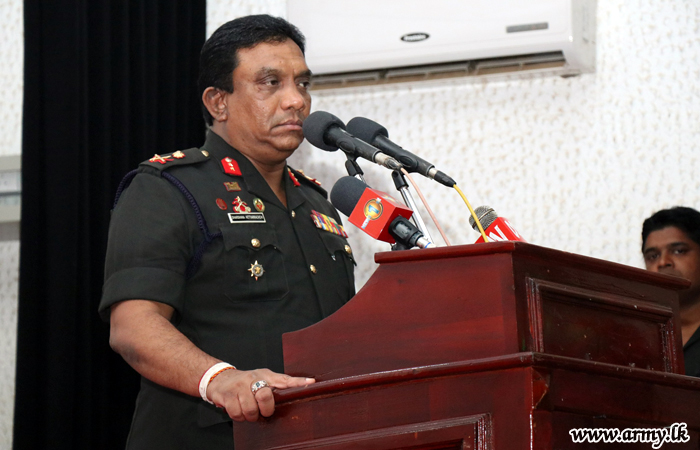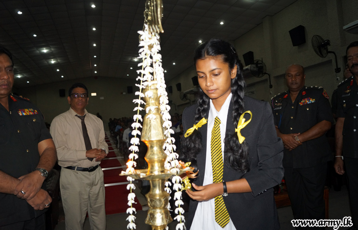 Major General Darshana Hettiarachchi after inviting all beneficiaries to the SFHQ-J gave away those scholarships to A/L achievers including two visually-impaired A/L achievers in the presence of donors.