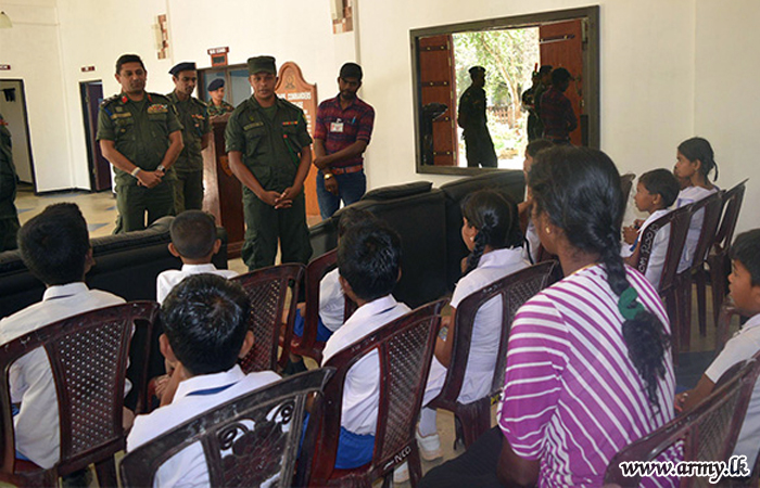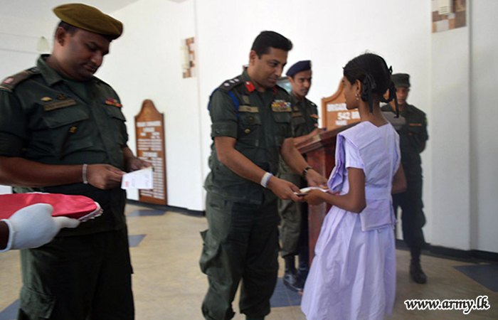 542 Brigade Headquarters in close consultation with authorities in the Department of Education in Mannar selected poverty-stricken 13 students of the Mullikulam Roman Catholic School in Mannar, eligible to receive those cash vouchers, each worth about Rs 1200/=.