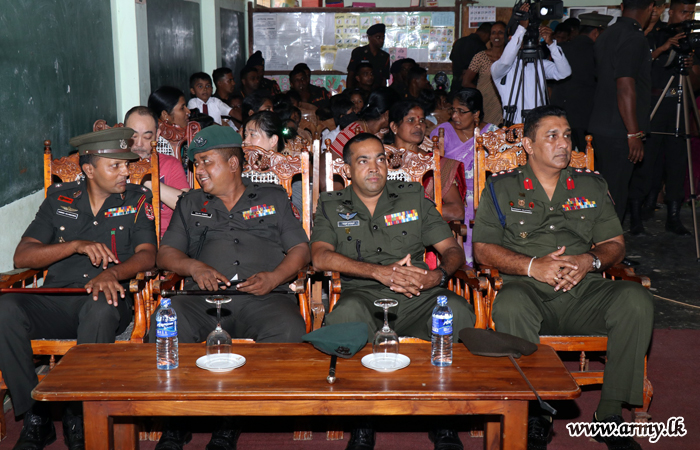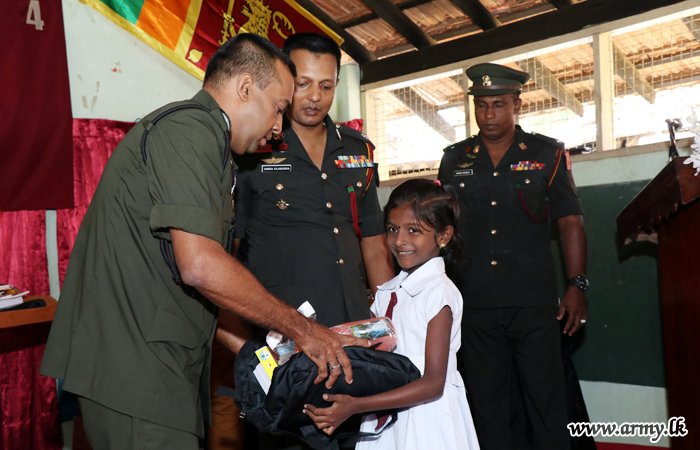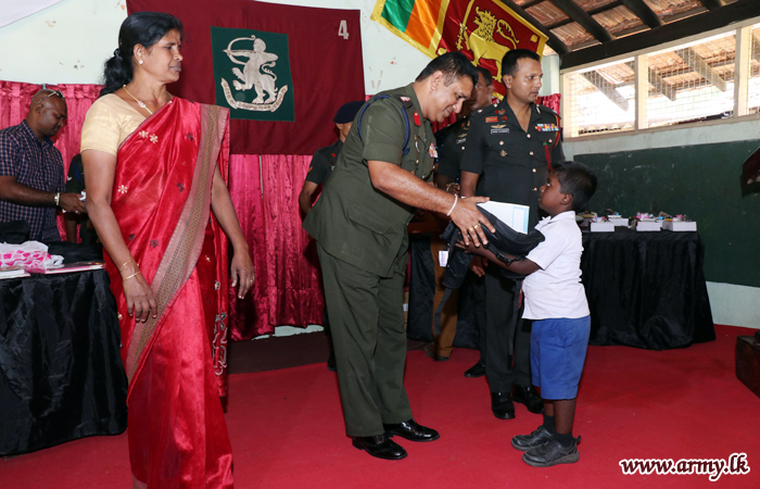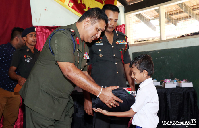 Security Force Headquarters - Jaffna (SFHQ-J) taking its humanitarian welfare projects further forward took steps to distribute one more stock of school accessories to 27 students at Chavakachcher Roman Catholic Junior Mixed School with the sponsorship provided by the Japan-based expatriate, Mr Amila Bandara and his Japanese associates on Wednesday (6) during a simple ceremony, organized by the 52 Division Headquarters.