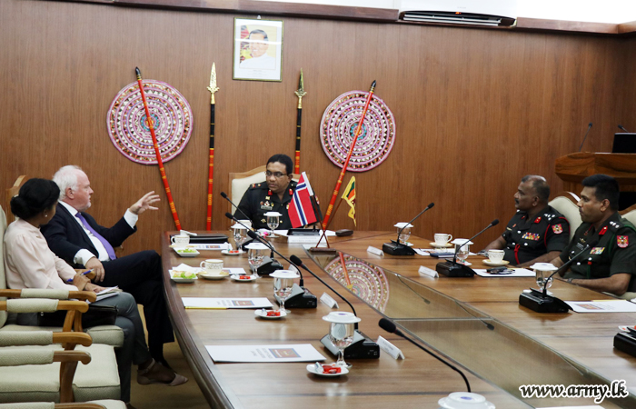 H.E Thorbjorn Gaustadsaether, Norway's Ambassador for Sri Lanka during a visit to the Jaffna peninsula, paid a courtesy call on the Commander, Security Forces - Jaffna, Major General Darshana Hettiarachchi on Thursday (7), together with the political Adviser in the Embassy.