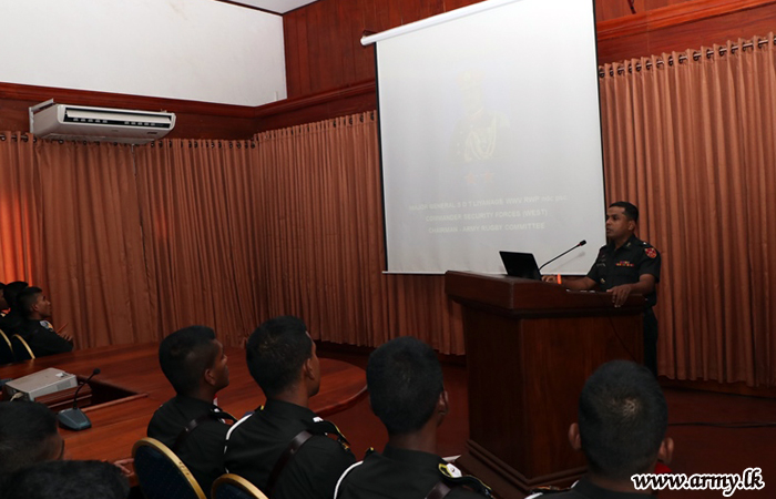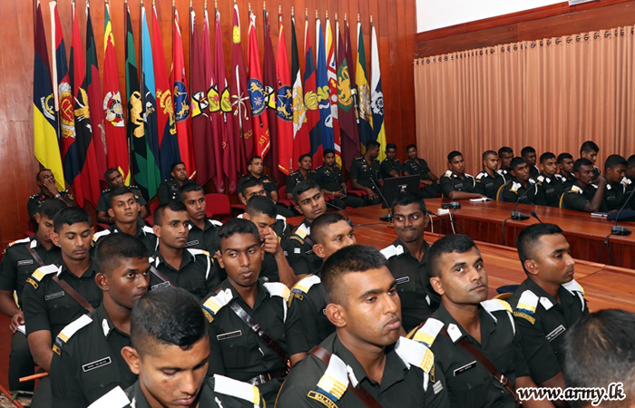 On behalf of Major General Sathyapriya Liyanage, Commander, Security Forces – West, Major B.S.C Padmakumara, General Staff Officer 2 (Training) welcomed them and presented a comprehensive briefing on the role and tasks, history and responsibilities of the SFHQ – West.